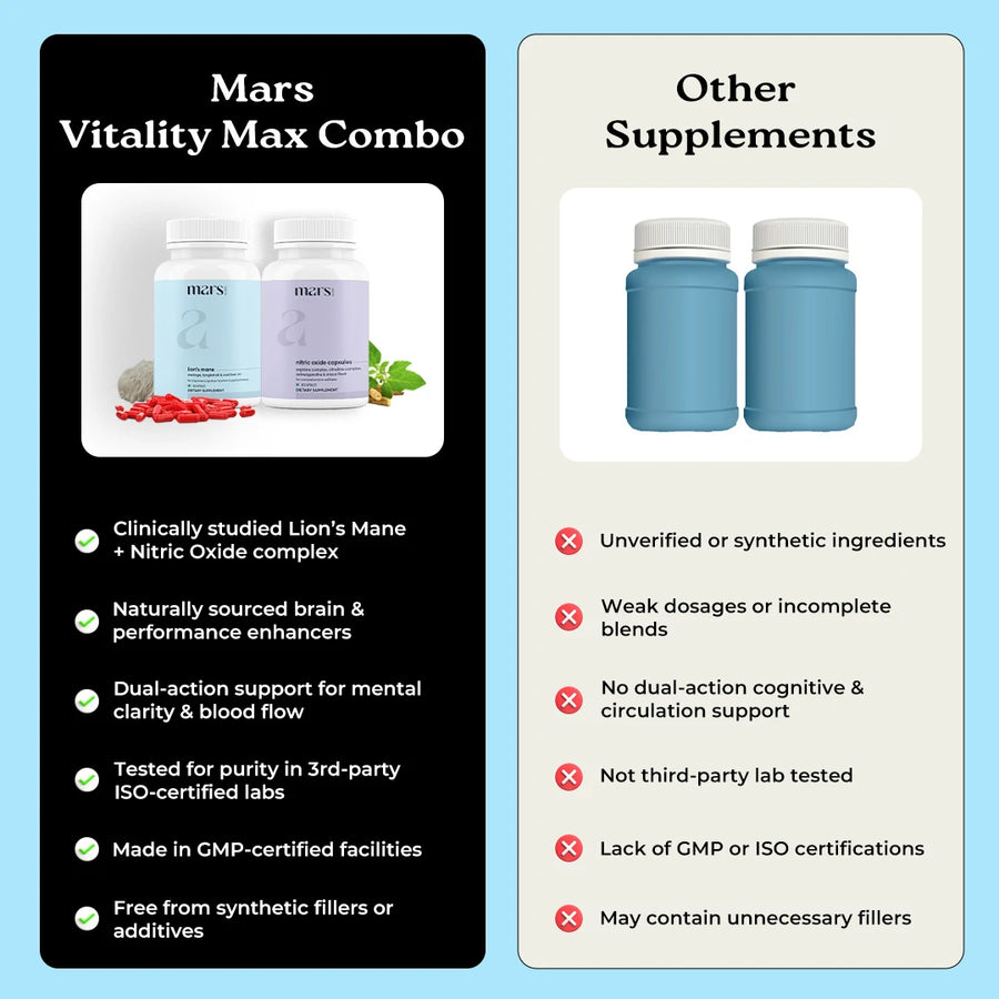 Mars Vitality Max - A Lion’s Mane & Nitric Oxide Combo for Better Stamina & Performance