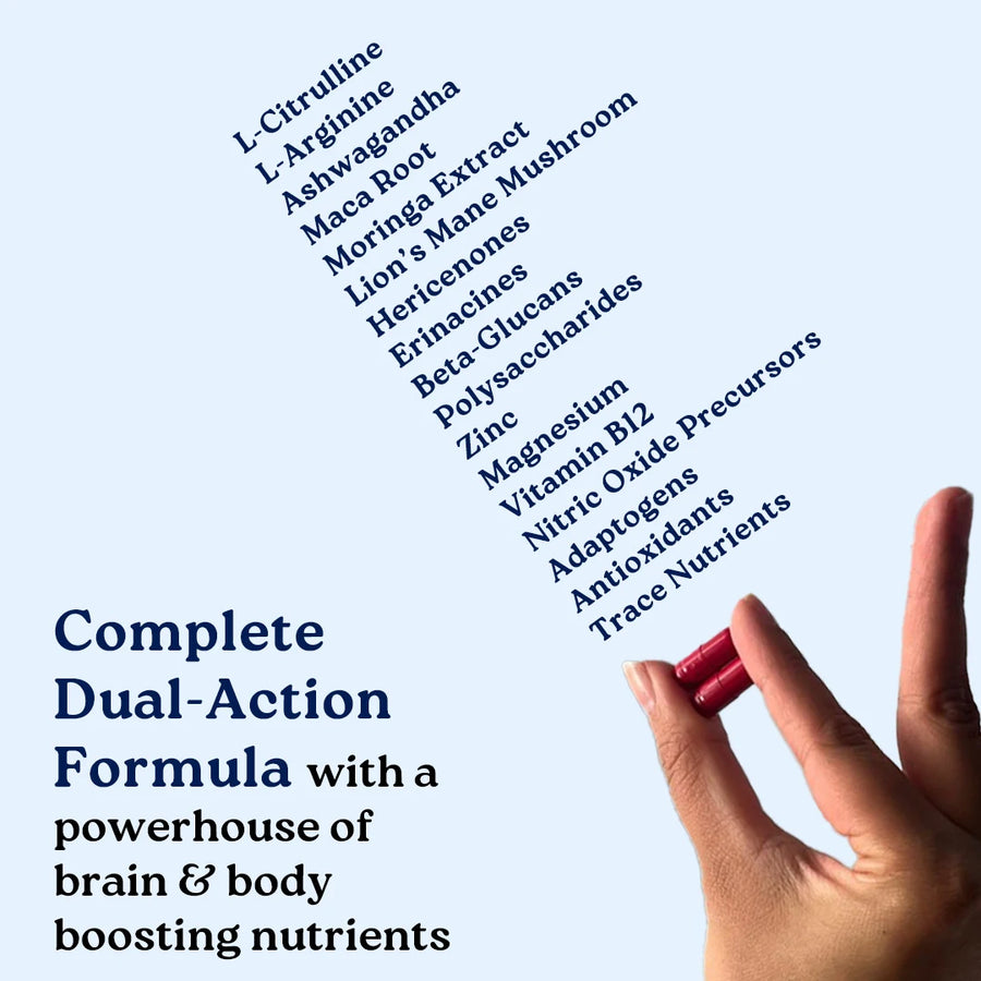• Combines body-boosting and brain-sharpening ingredients for balanced vitality