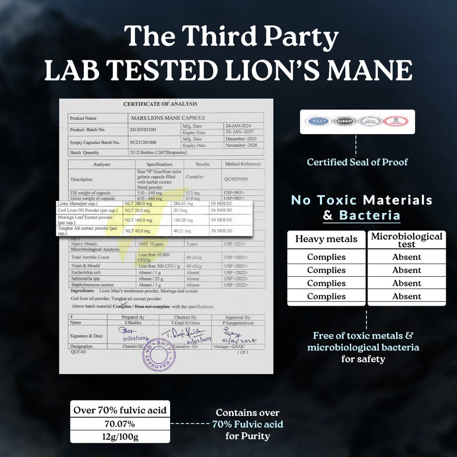Formulations by Mars by GHC undergo lab testing and are generally regarded as safe for regular use. Adverse effects are not commonly reported. However, as with any supplement, professional guidance is advisable when combining with other treatments or medications.