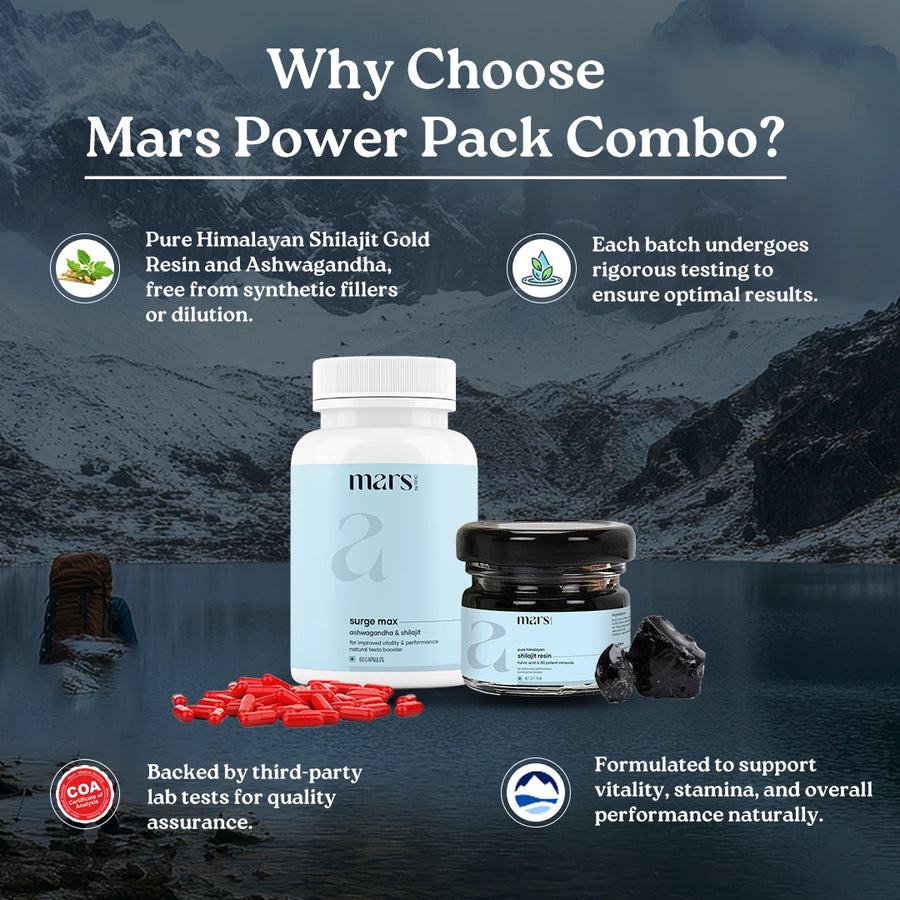 Mars Power Pack: Pure Himalayan Shilajit Gold Resin & Natural Ashwagandha Caps