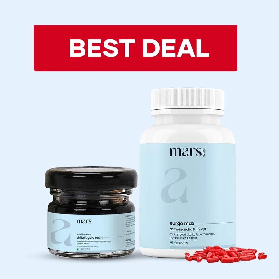 Mars Power Pack blends Pure Himalayan Shilajit Gold Resin with Ashwagandha, a powerful fusion designed to elevate strength, boost energy levels, and support enhanced endurance and focus naturally.