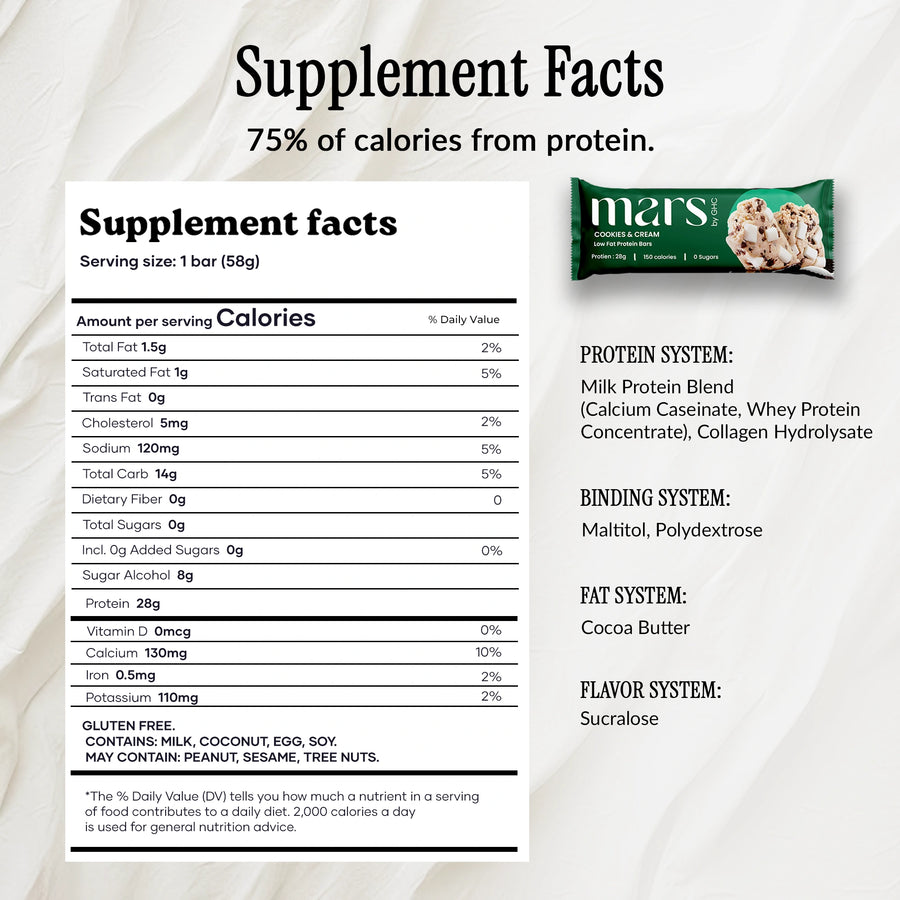 Each 30g bar blends premium whey proteins, fiber, and real cookie crunch to help power recovery, curb cravings, and keep you satisfied longer. Whether you’re hitting the gym, powering through work, or just need a smarter snack, Mars Cookies & Cream Protein Bars are your perfect, guilt-free fuel.