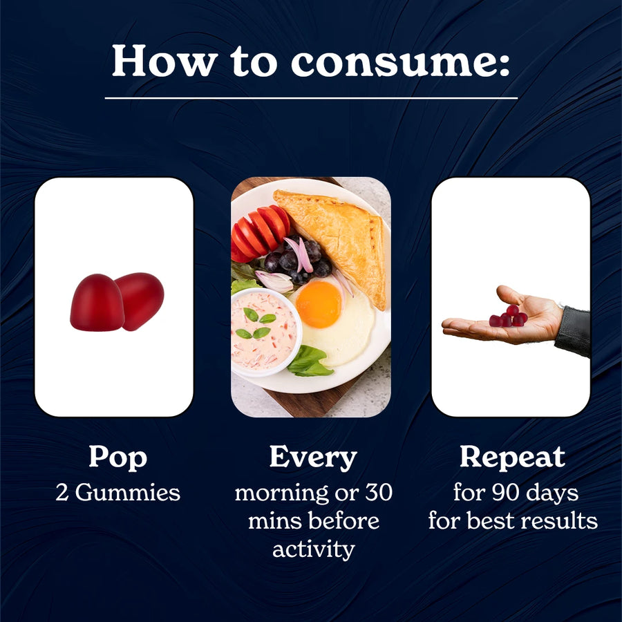 Each serving combines ingredients like Nitric Oxide, Shilajit, Tongkat Ali, and Ashwagandha - selected to help maintain healthy blood flow, promote stamina, and support mental clarity. Designed for those leading active lives, Power Max Gummies blend traditional wellness with modern performance support.