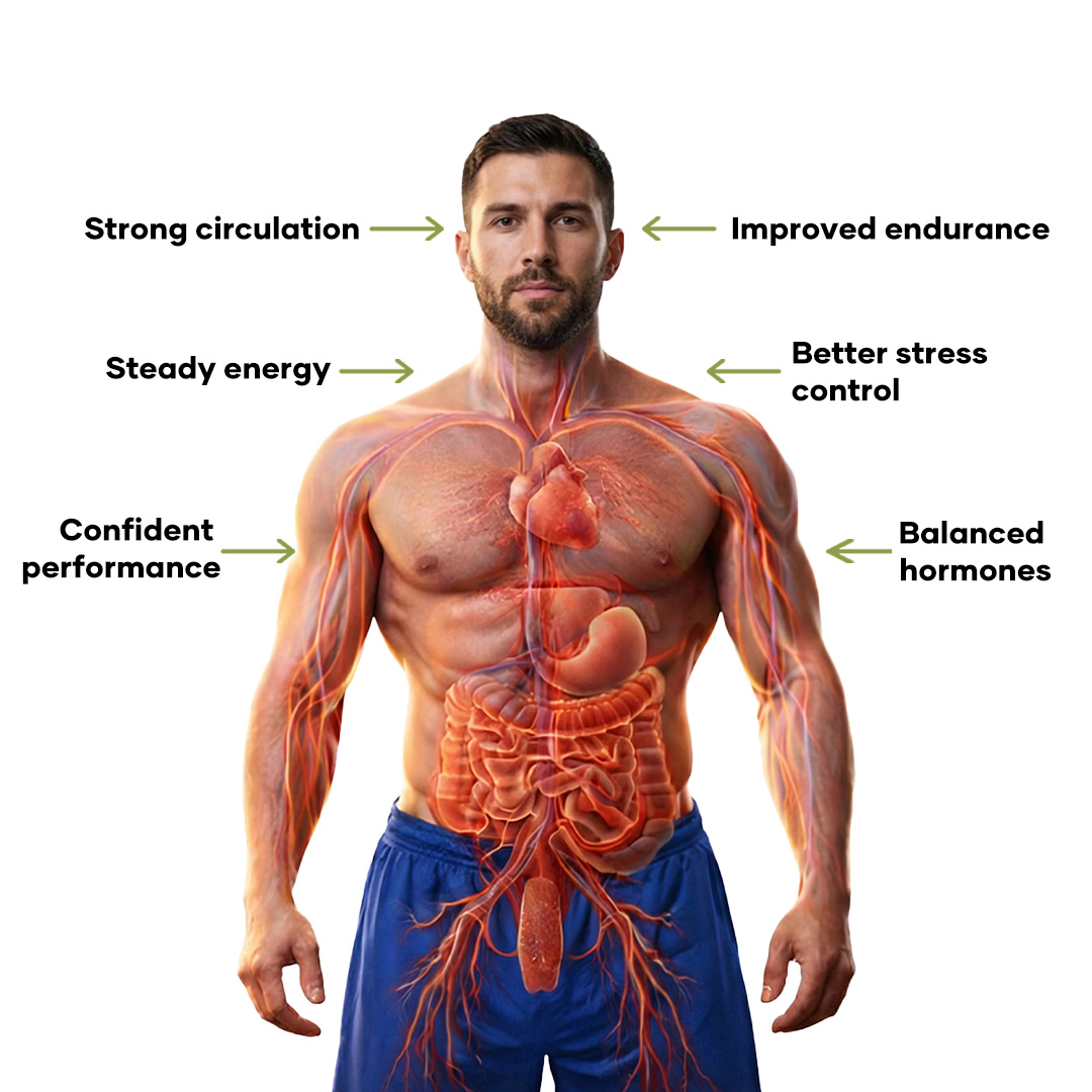 Daily consistency helps support circulation, desire, stamina, and performance timing over time